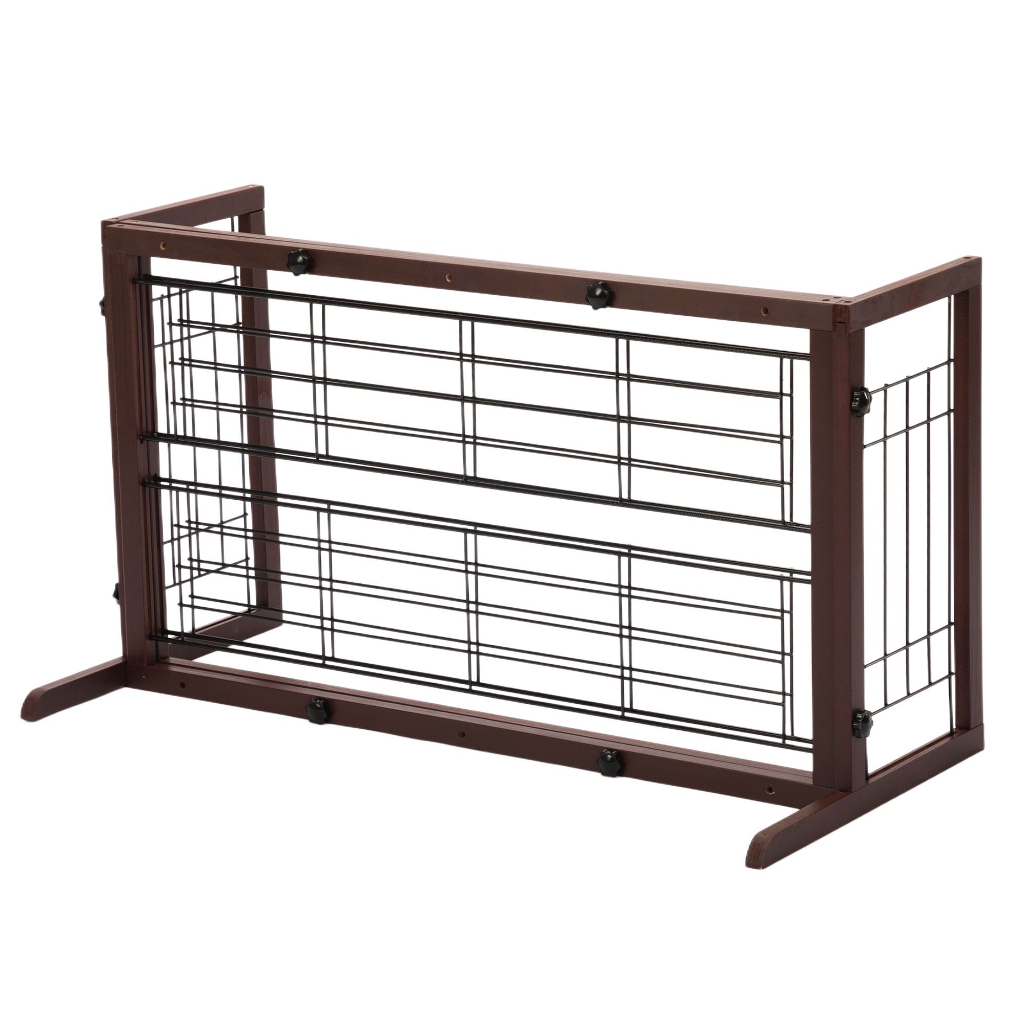 Home > 38"-71" Adjustable Wooden Pet Gate for Dogs, Indoor Freestanding Dog Fence for Doorways, Stairs, Deep Brown